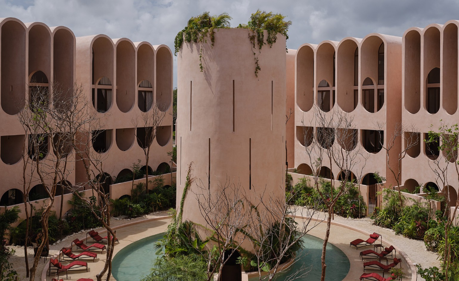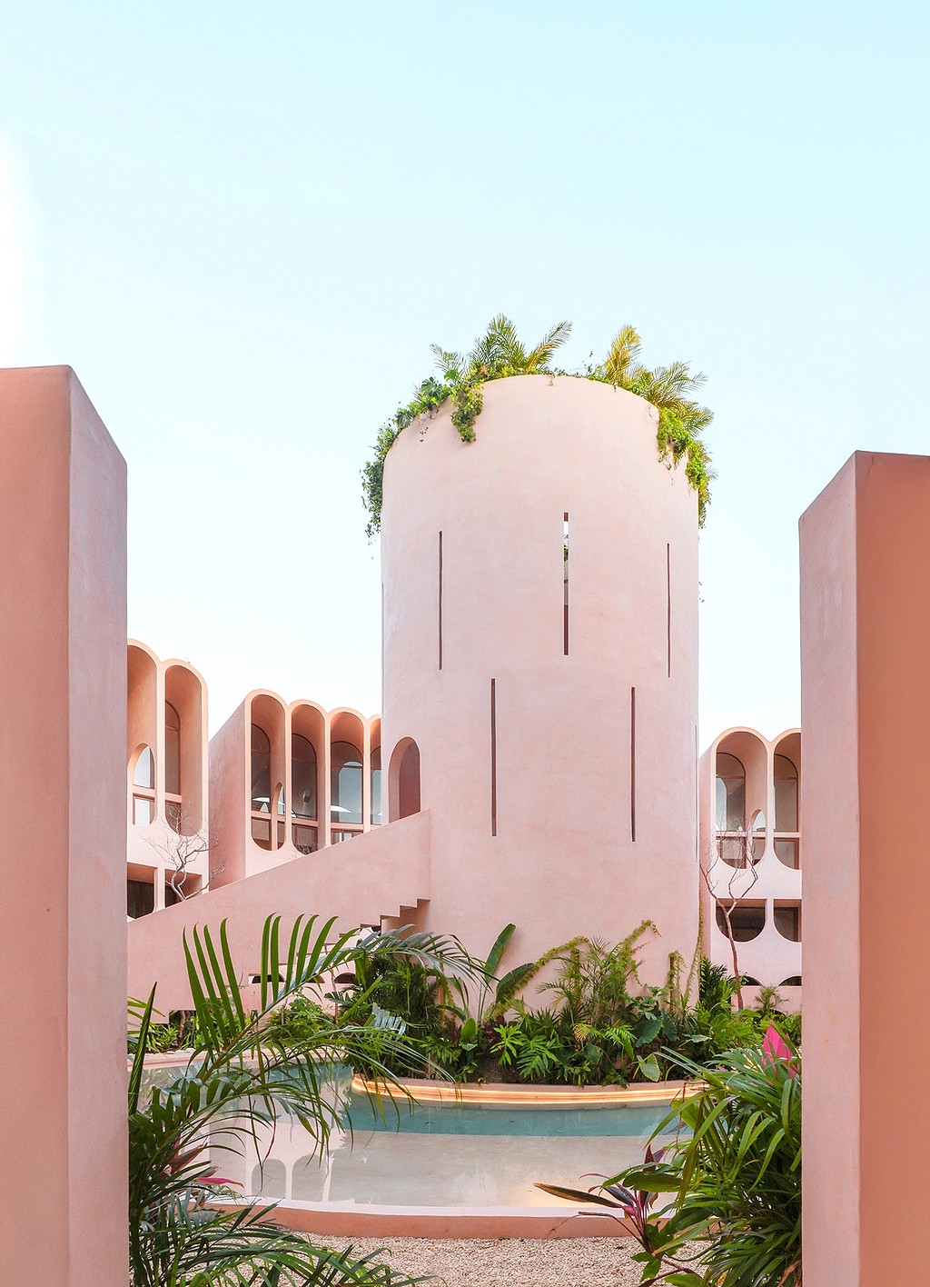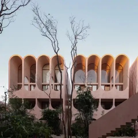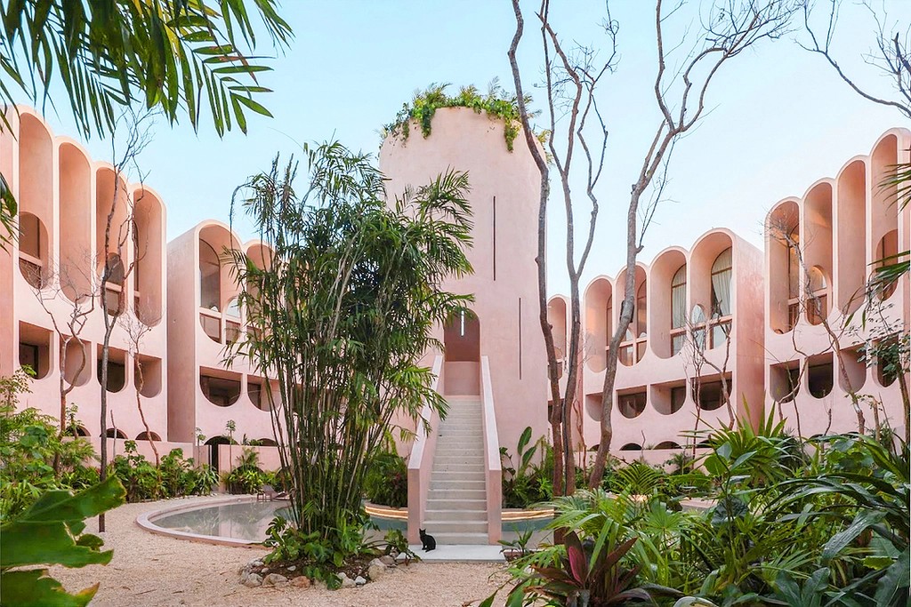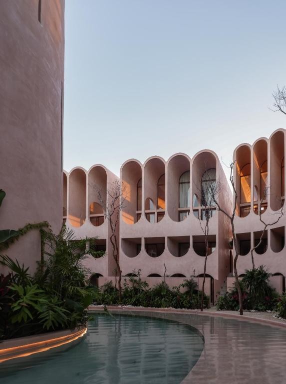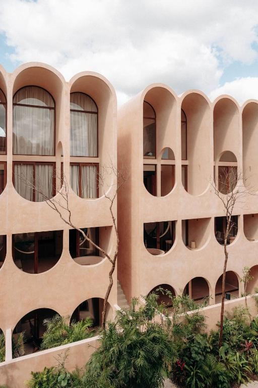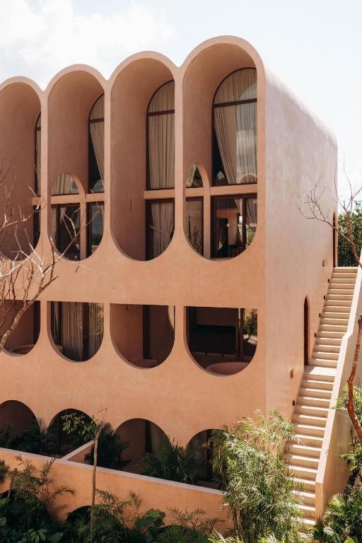 Babel Tulum is a stunning boutique aparthotel located at the urban edge of Tulum, Quintana Roo. Designed by the renowned Mexican firm V Taller, its architecture stands out for its vertical approach, featuring a central tower with flowing arches and vaults that favor natural ventilation and a seamless indoor-outdoor connection.