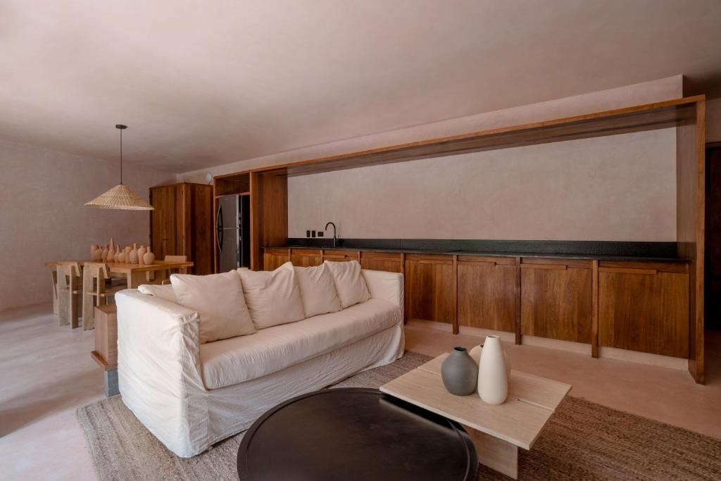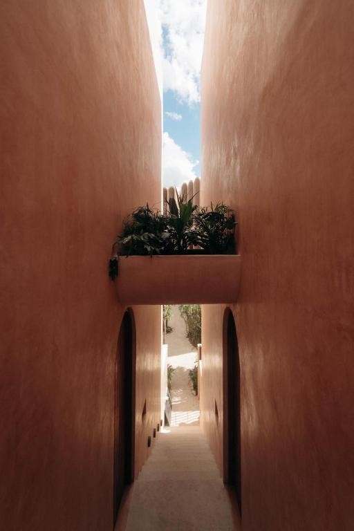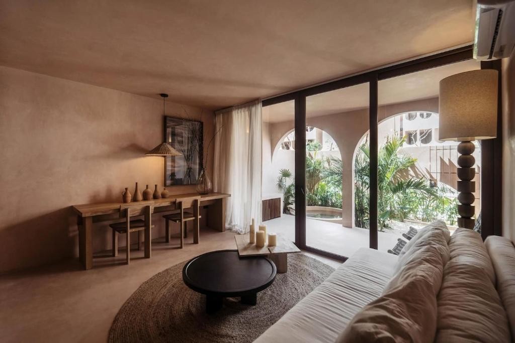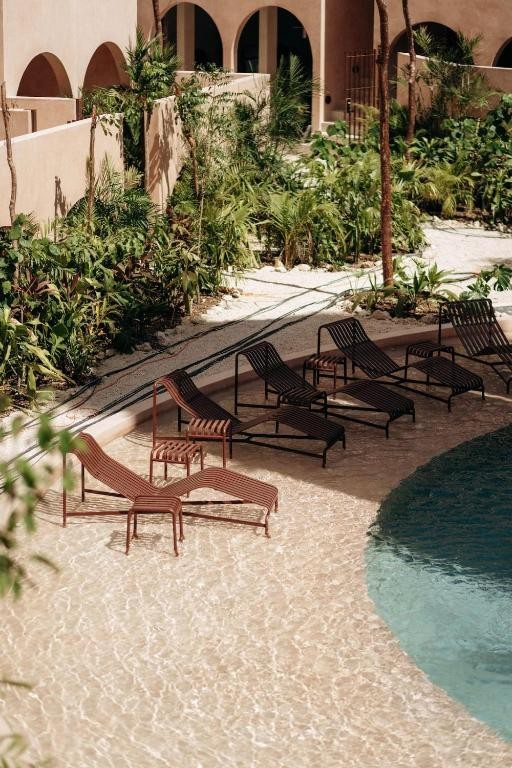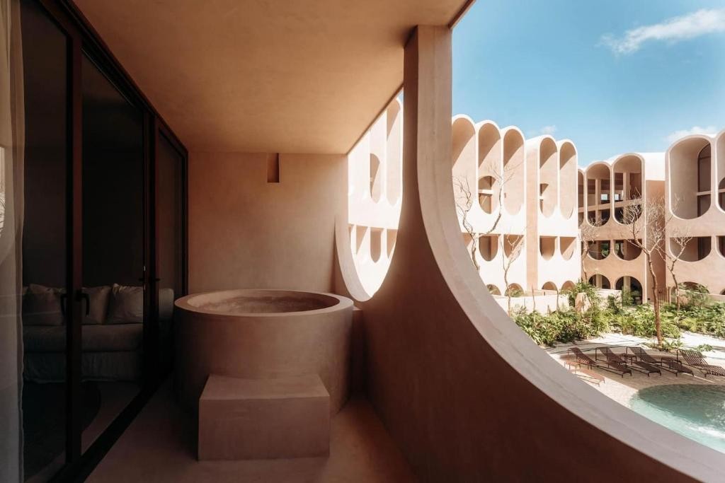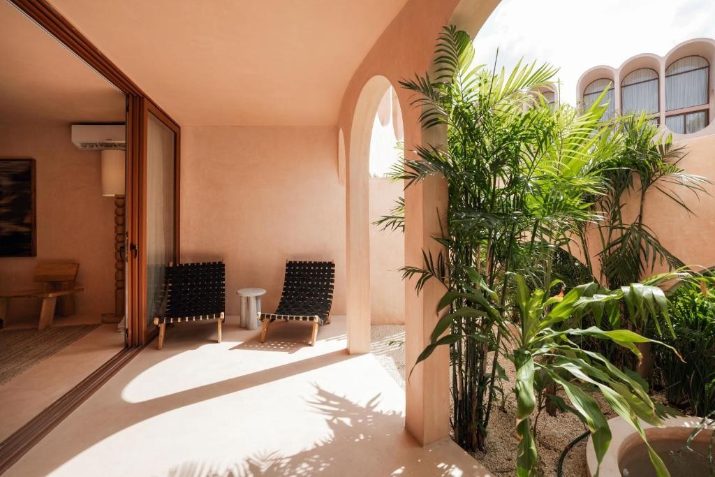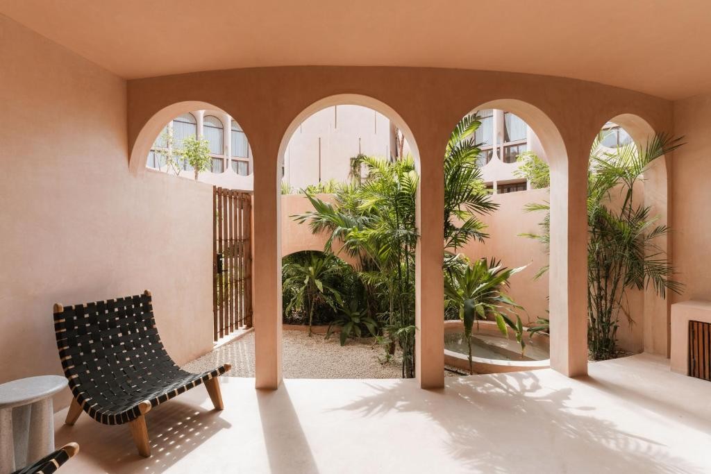 Design & Vibe: The design is grounded in "wellness without the clichés," utilizing local materials like Chukum (lime-based stucco) and tropical timbers (Tzalam and Parota). Its aesthetic is minimalist and earthy, centered around a peaceful courtyard with a "hammam" feel and a triangular rooftop opening perfect for stargazing.