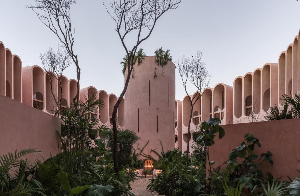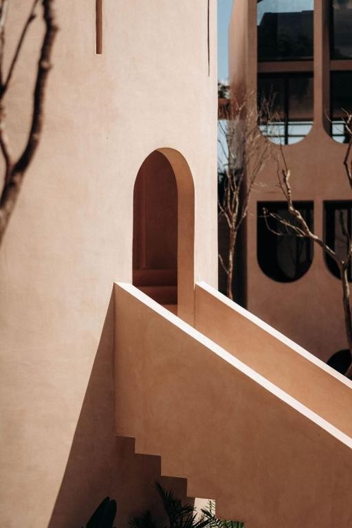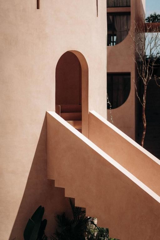 Babel Tulum is a stunning boutique aparthotel located at the urban edge of Tulum, Quintana Roo. Designed by the renowned Mexican firm V Taller, its architecture stands out for its vertical approach, featuring a central tower with flowing arches and vaults that favor natural ventilation and a seamless indoor-outdoor connection.