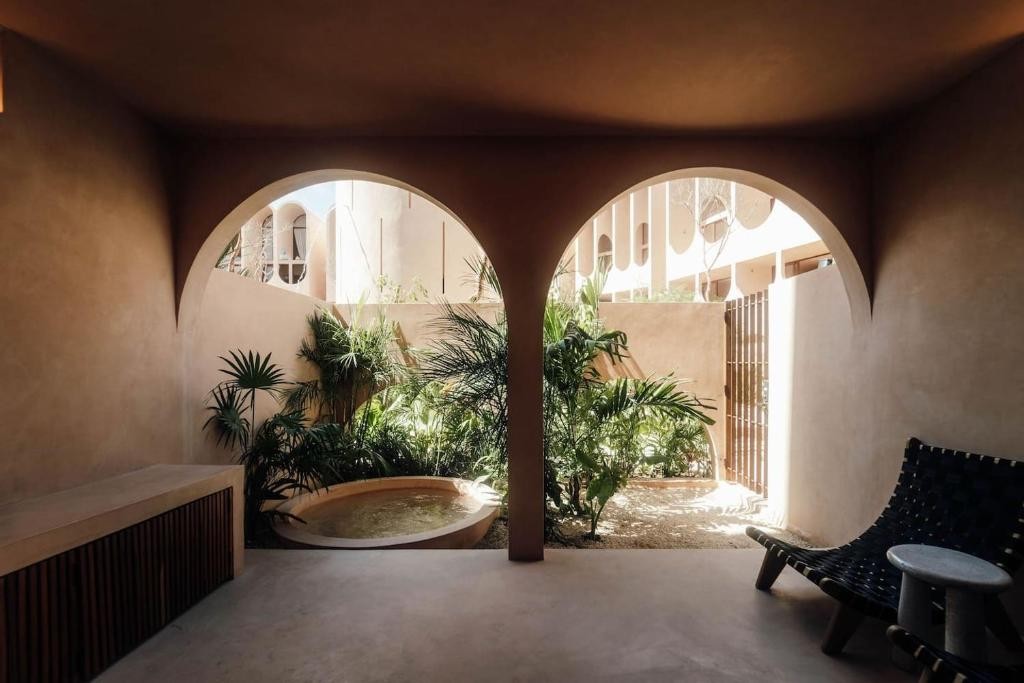 Design & Vibe: The design is grounded in "wellness without the clichés," utilizing local materials like Chukum (lime-based stucco) and tropical timbers (Tzalam and Parota). Its aesthetic is minimalist and earthy, centered around a peaceful courtyard with a "hammam" feel and a triangular rooftop opening perfect for stargazing.