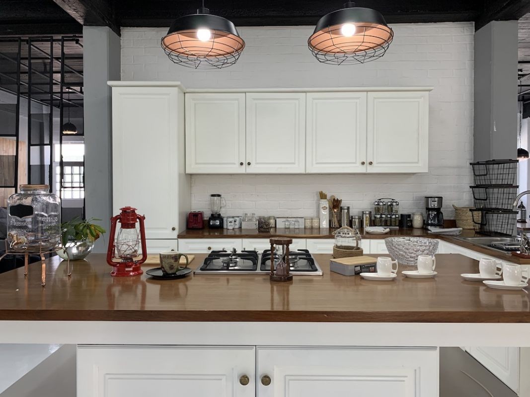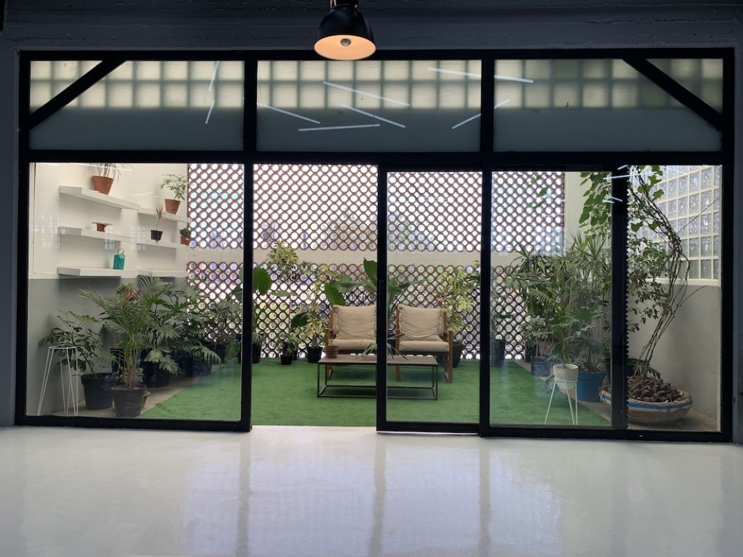 Studio with different house sets and natural light.
