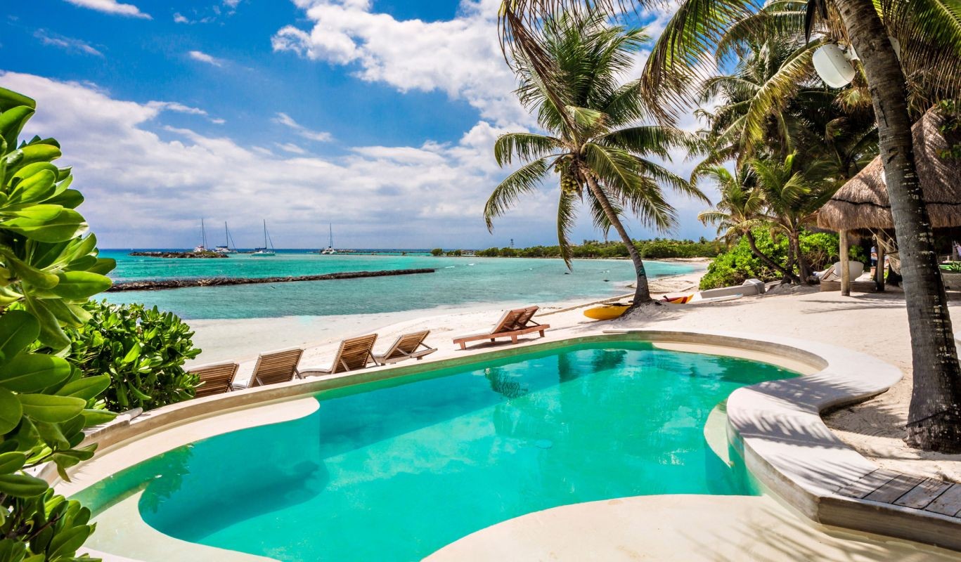 Beach, Jungle, Palm Trees, House