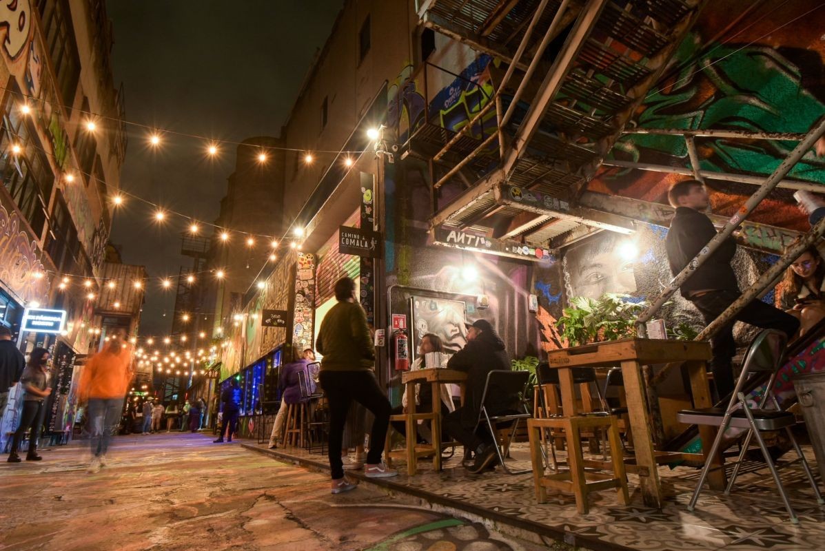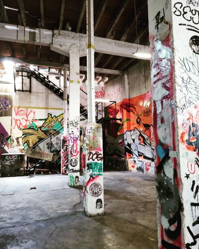 An abandoned flour mill repurposed into an urban center filled with colorful graffiti from mexican artists, neon lights, and the perfect photo opportunities.