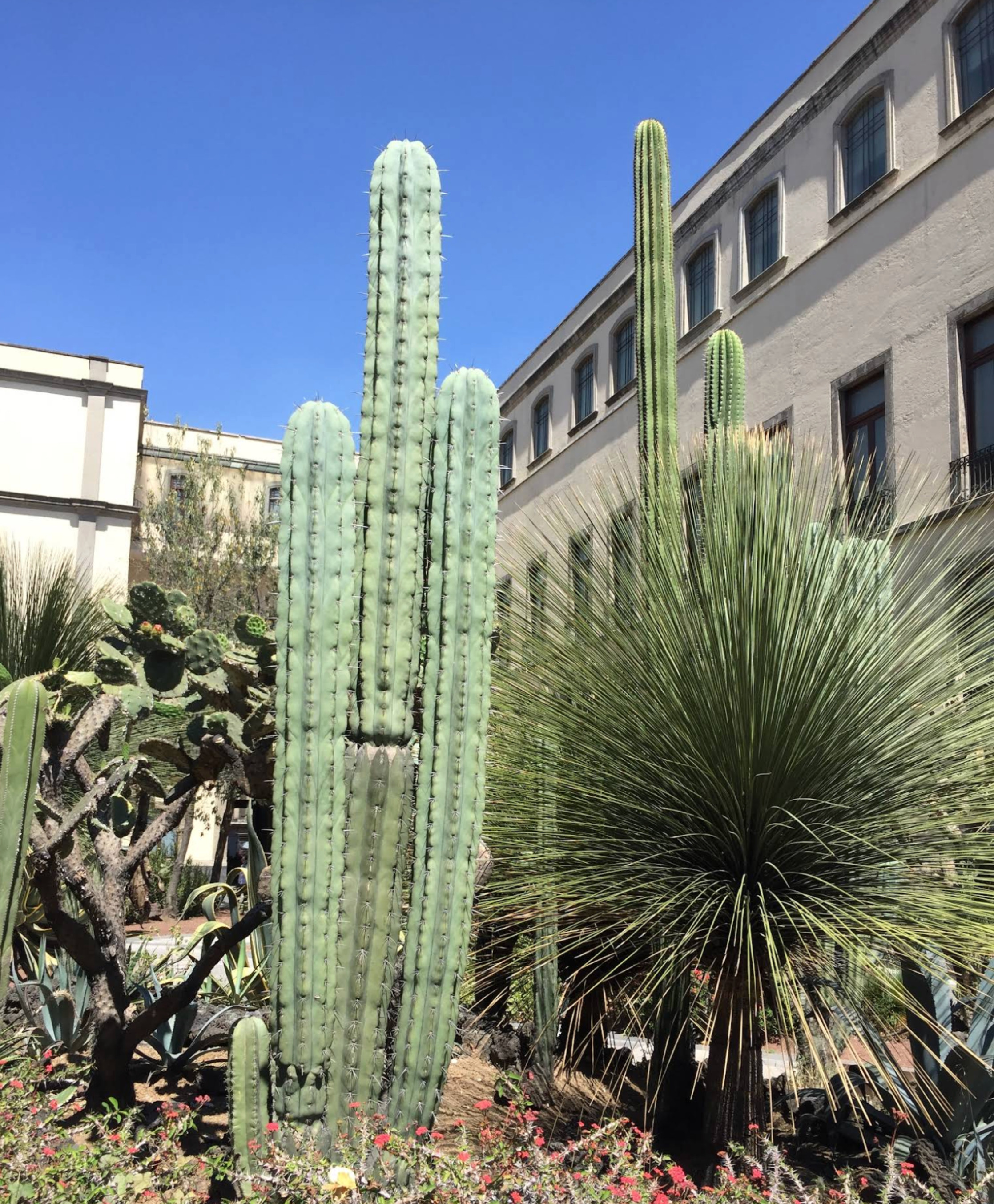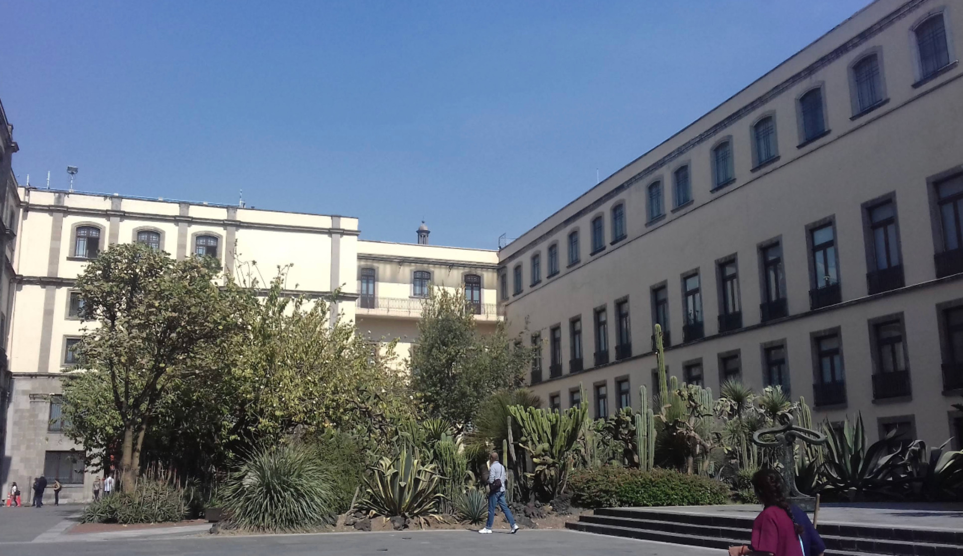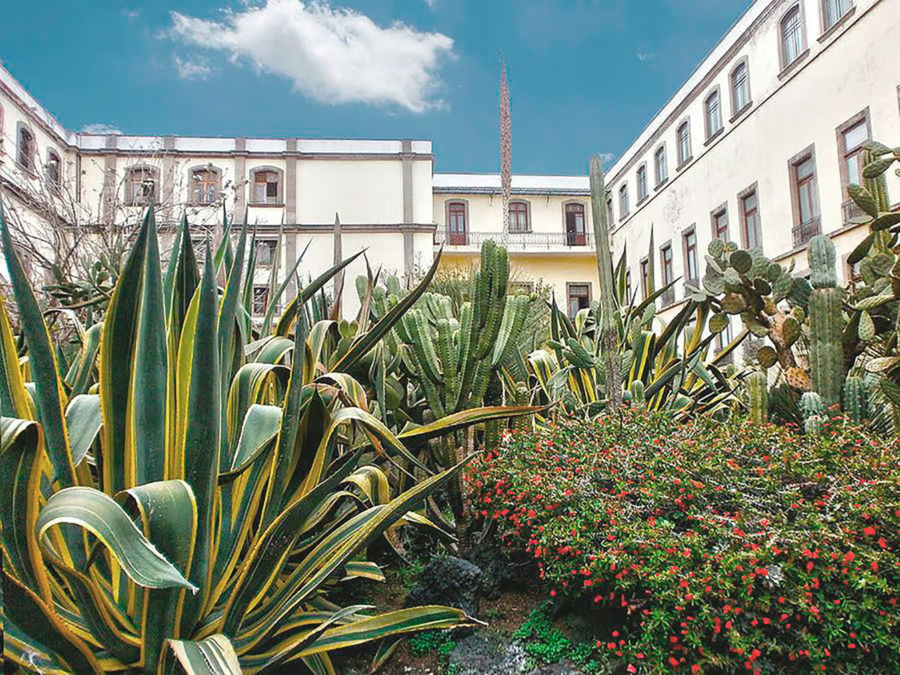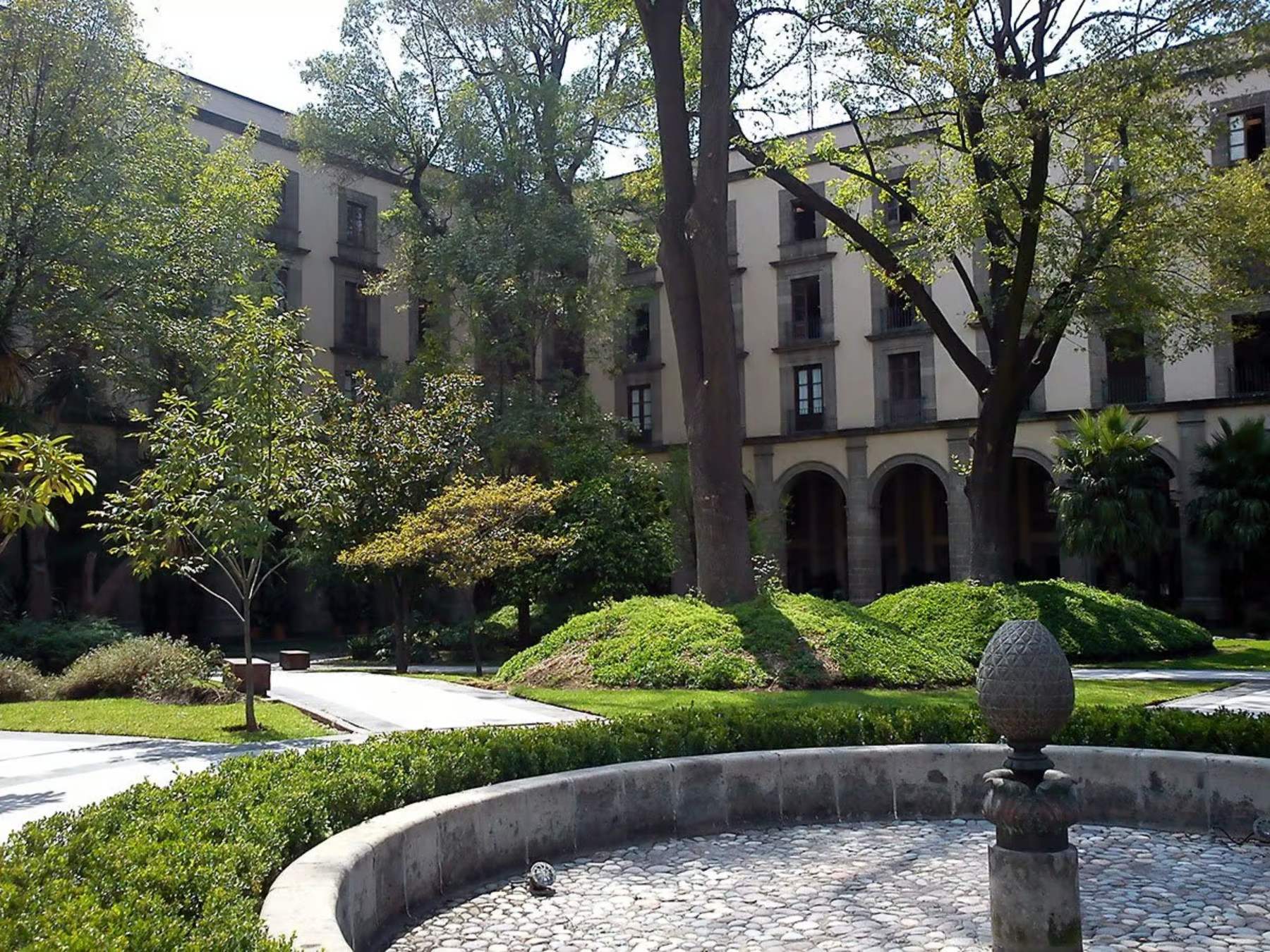 At the center of the garden, there is a marble fountain surrounded by numerous trees and vines, featuring species from Mexico, Europe, and Asia. This garden conserves a variety of plant species, both native and international, with notable specimens including maguey, blue agave, prickly pear, cazahuate, the "manita" tree, and towering ahuehuetes.